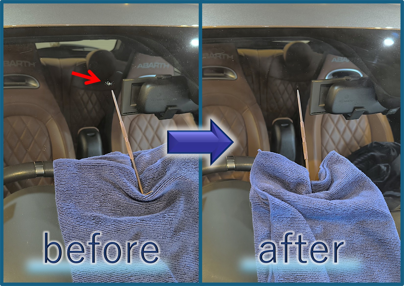 本日のウィンドウリペアご依頼は、ABARTH 595 のオーナー様。
