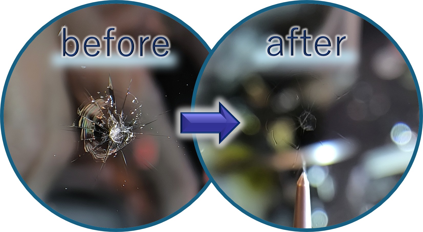 飛び石ヒビのリペアについて詳しくは、こちらのページ→「飛び石ヒビのリペア」もご参照ください。