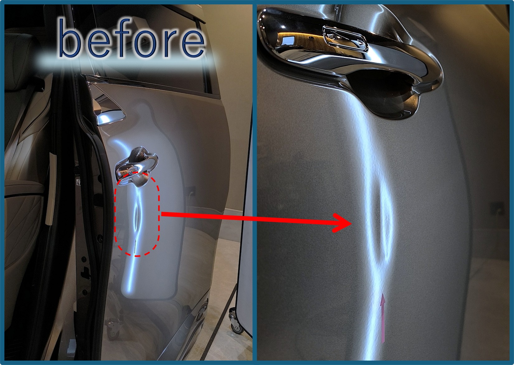 ※駐車場で擦ってしまったなど、明らかに施工不可(デントリペアの対象外)のケースはお写真からも判断できます。