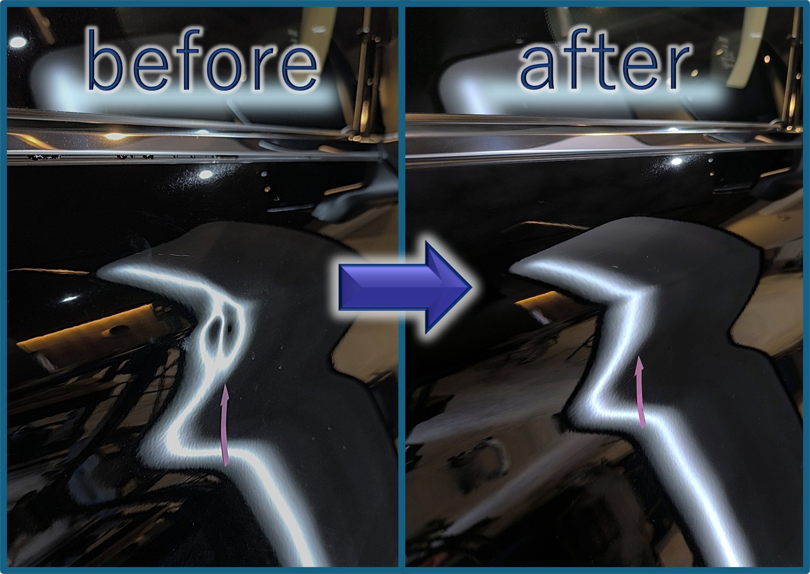 気になる凹み、デントリペアで対応できると「パテ埋めナシ」「再塗装ナシ」で凹みを消すことができます。