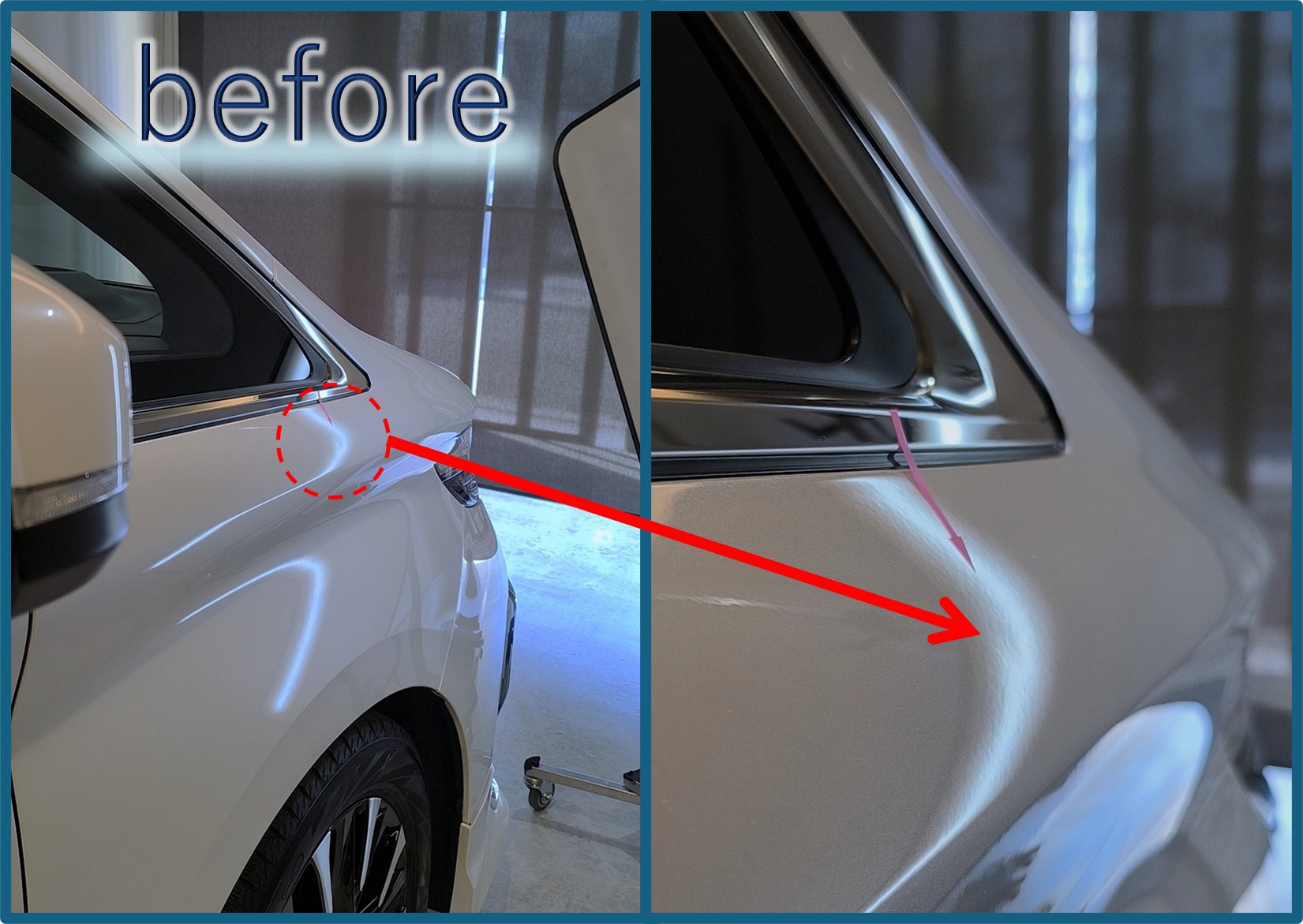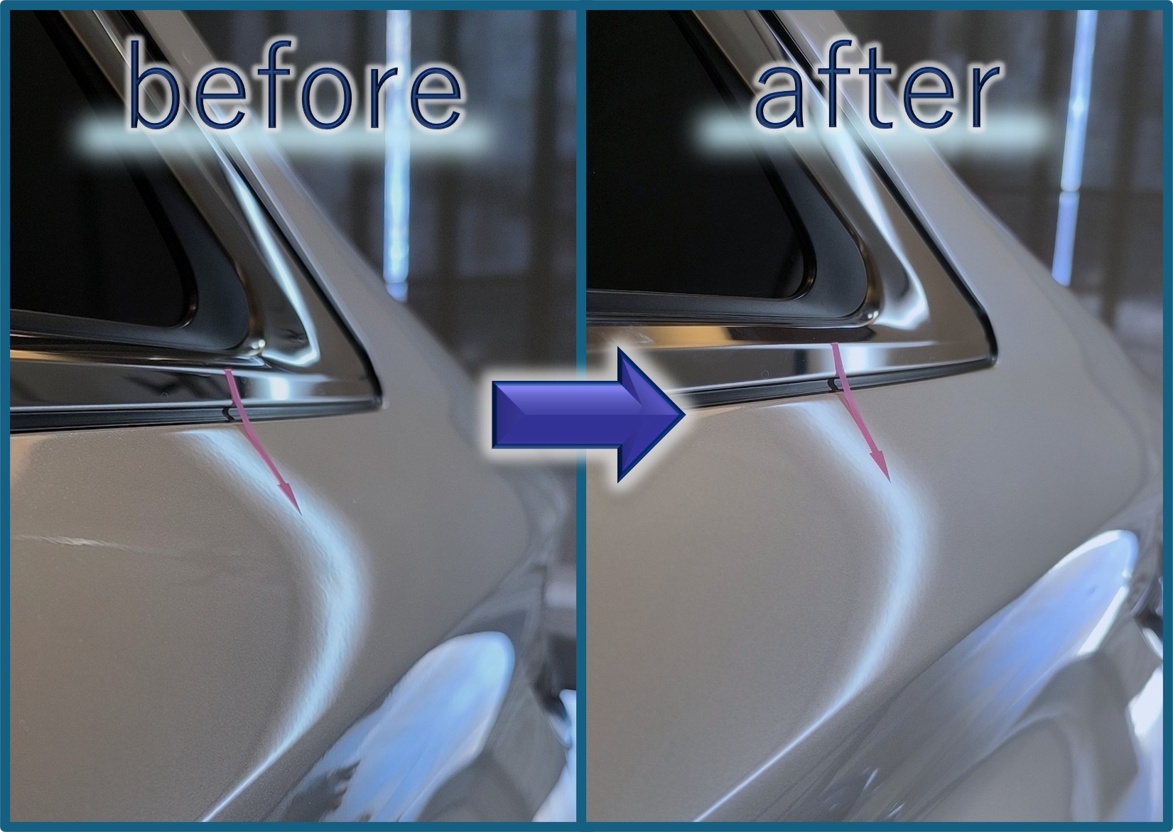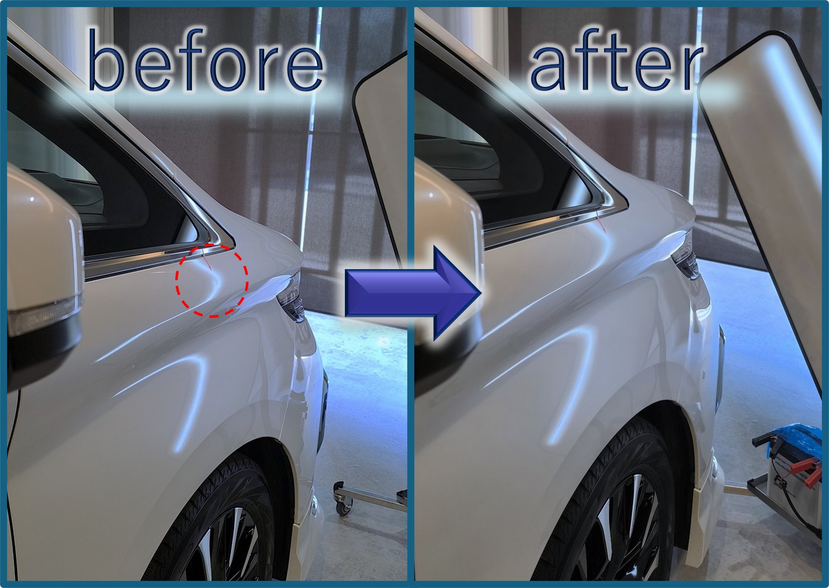 20分程の施工で完了しました。微妙な凹みでしたが、無くなるとスッキリしますね (^^)/