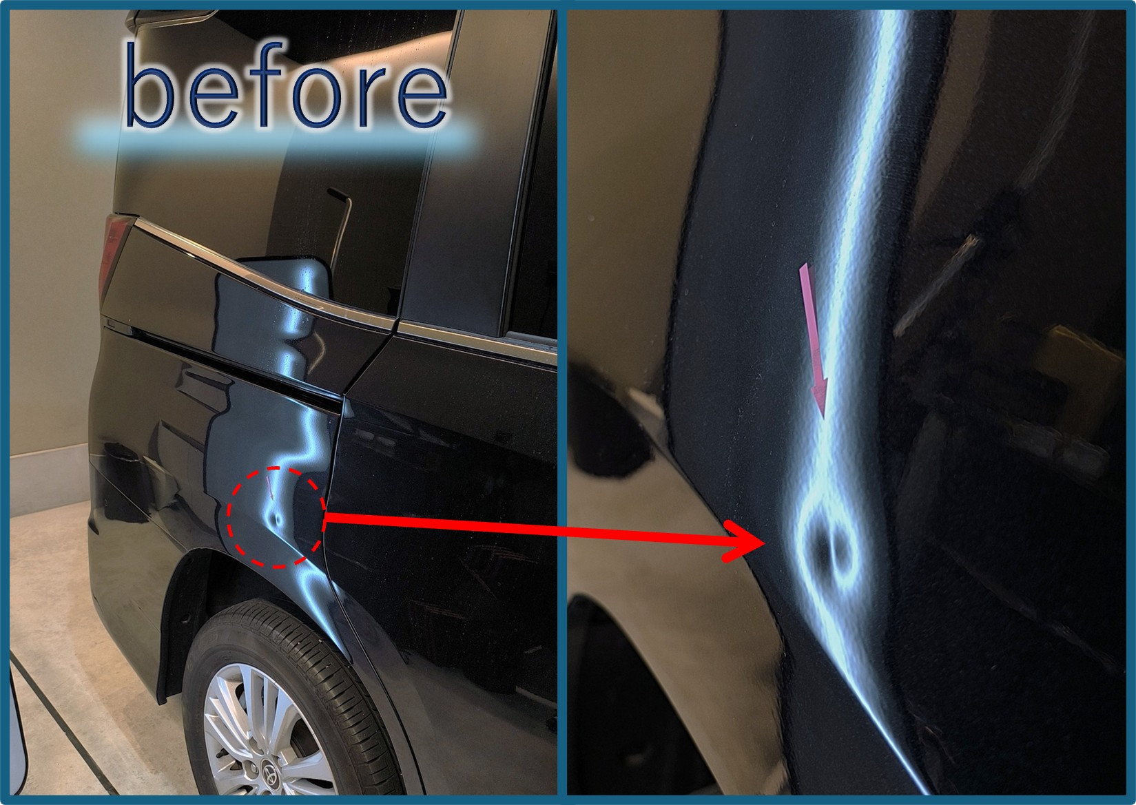 リアフェンダー付近にドアパンチ凹みができているとのご相談です。