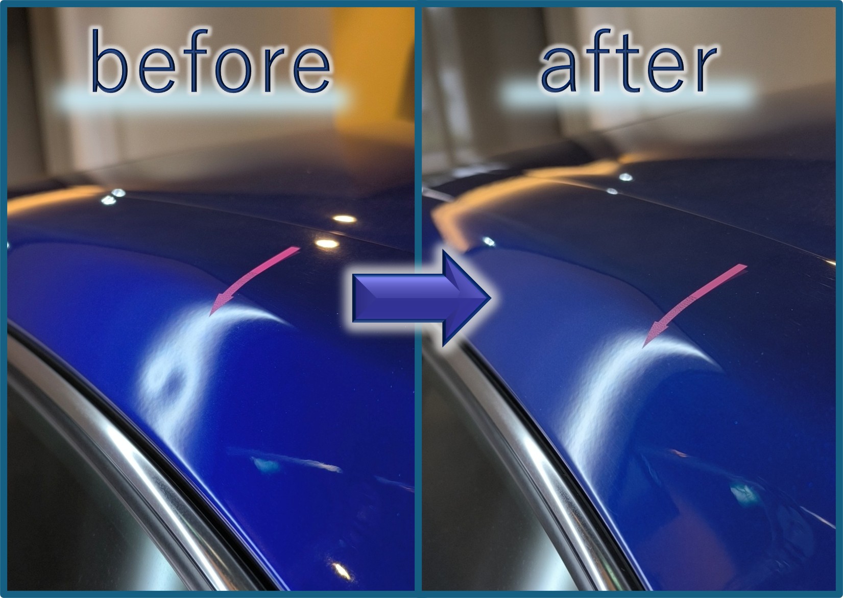 でもデントリペアなら、元の塗装を維持したままその場で凹みが無くなって、すぐに乗って帰ることができます。これぞデントリペアの醍醐味であり最大のメリットですね!