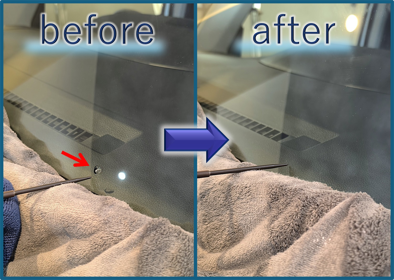 悪化リスクは大幅低減、見た目もかなり目立たなくなり、これなら車検も大丈夫そうなのでガラス交換を回避できます。