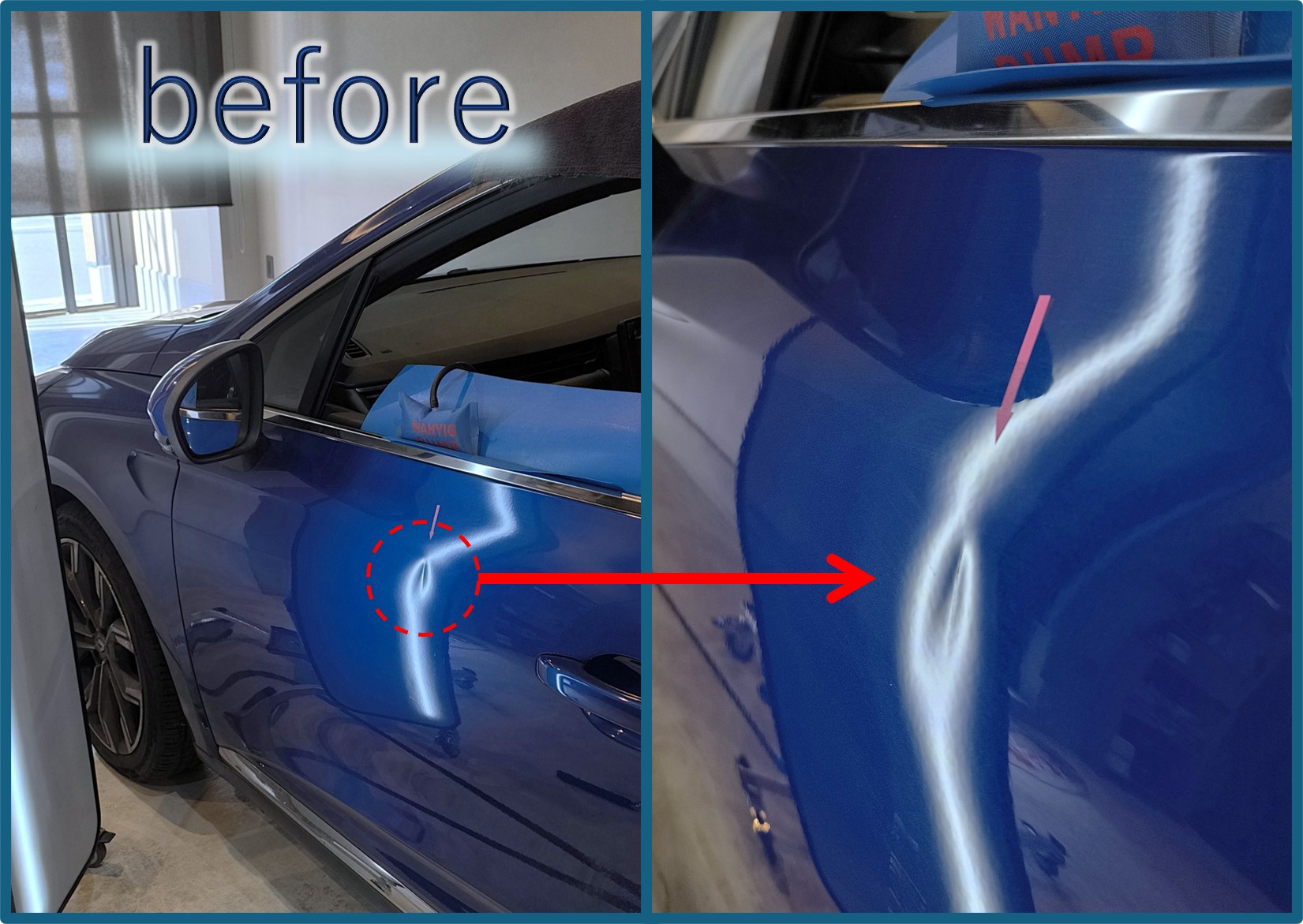 助手席ドアにドアパンチ被害とのご相談です。