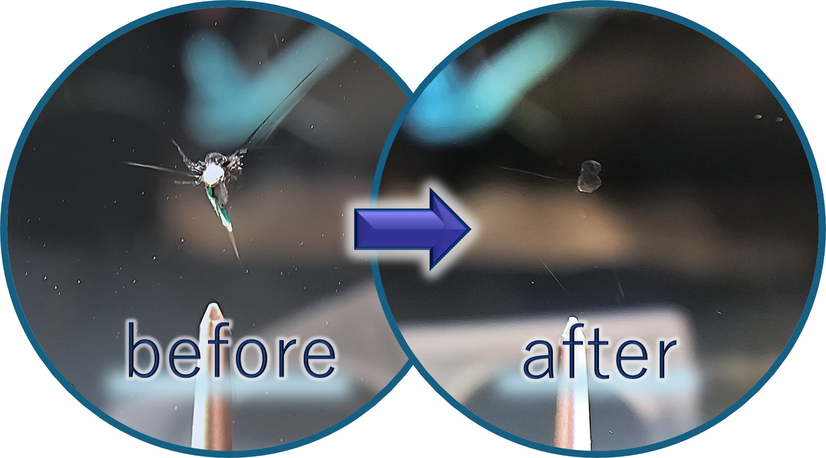 飛び石ヒビのリペアについて詳しくは、こちらのページ→「飛び石ヒビのリペア」もご参照ください。