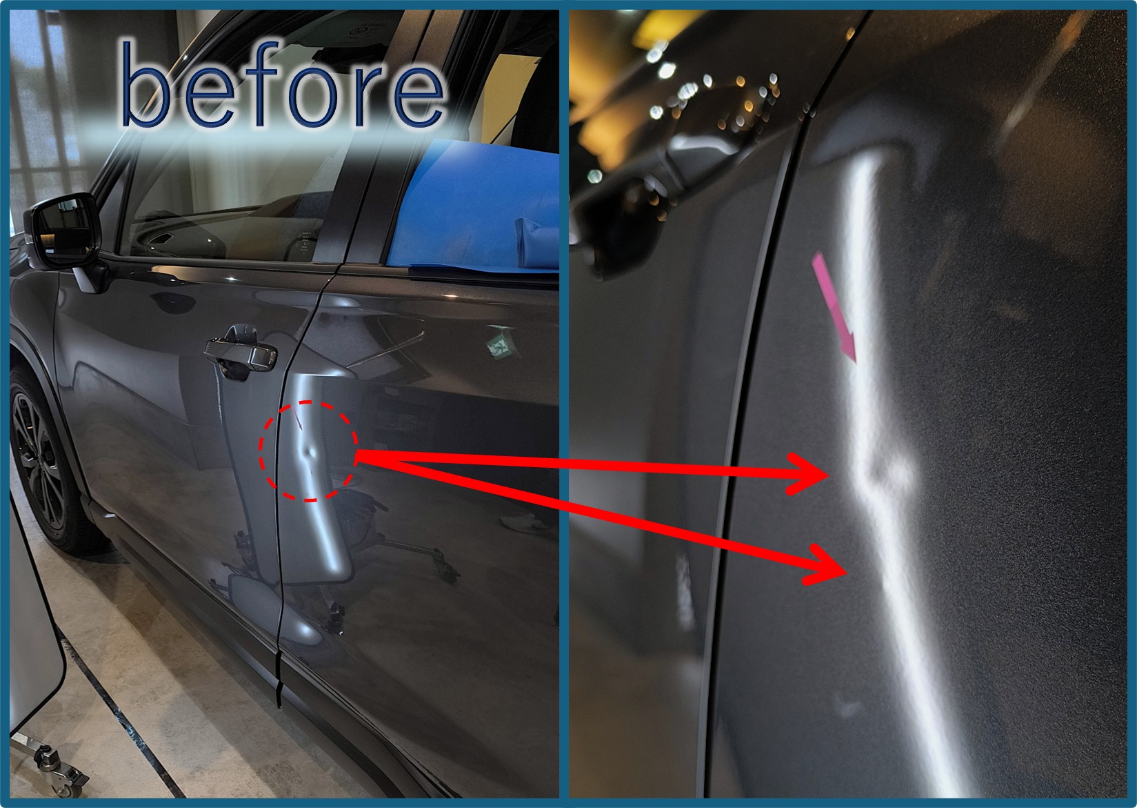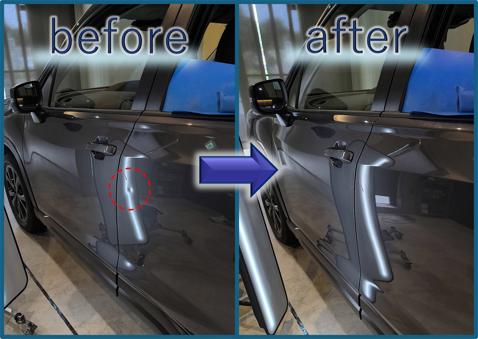 デントリペアは、塗装傷の無い軽微な凹みを元に戻す技術です。いつの間にかでいていた小さな凹みやドアパンチ被害などの修復は得意分野ですので、まずはお気軽にご相談ください。