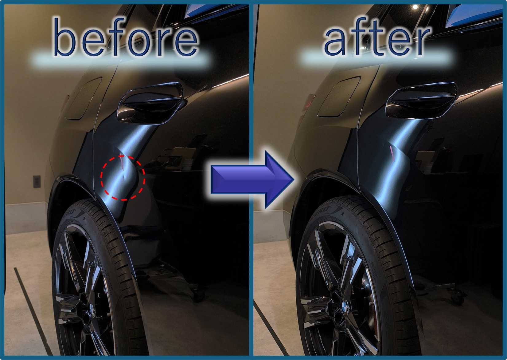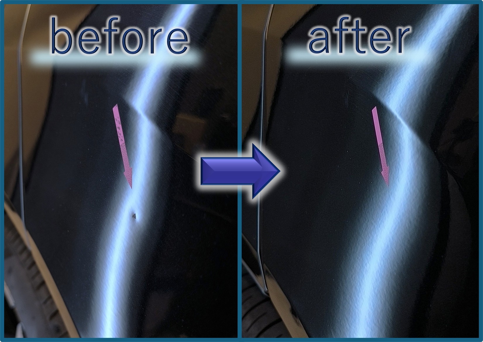 デントリペアで修復できたことで、パテ埋めも再塗装もナシ。したがって施工も短時間で完了します。元の塗装のまま凹みを消すことができるのはデントリペアだけ。