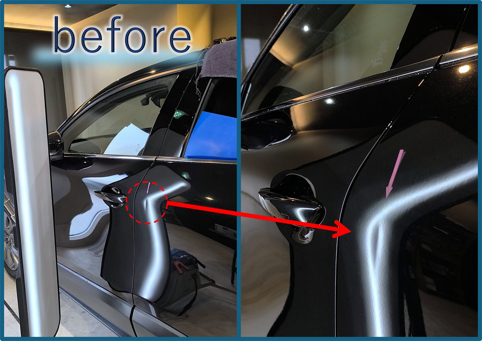 ドアの前方というかパネルの縁に近い場所は構造的に凹みの裏へリペアツールが入りにくいことが多く、今回もかなり前の方なので心配ですがどうでしょうか・・・