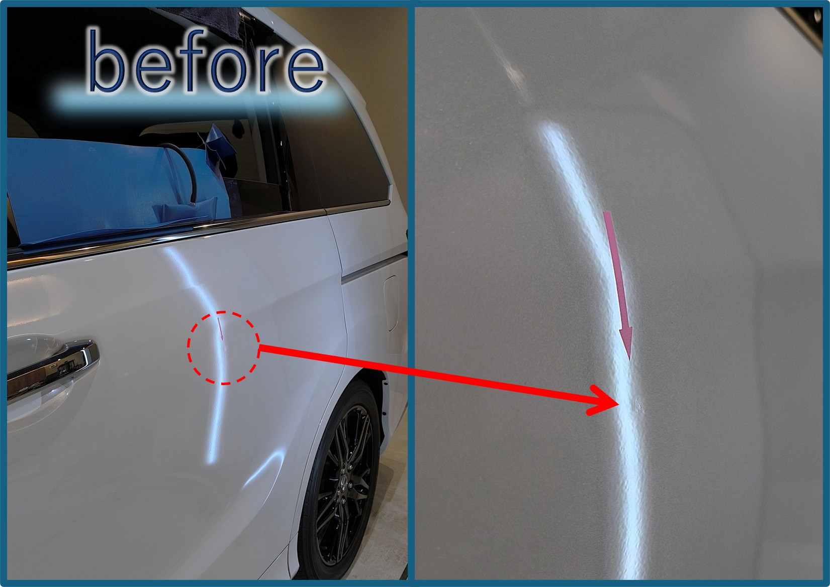 後席スライドドアに浅い凹みがあって気になっているとのご相談です。