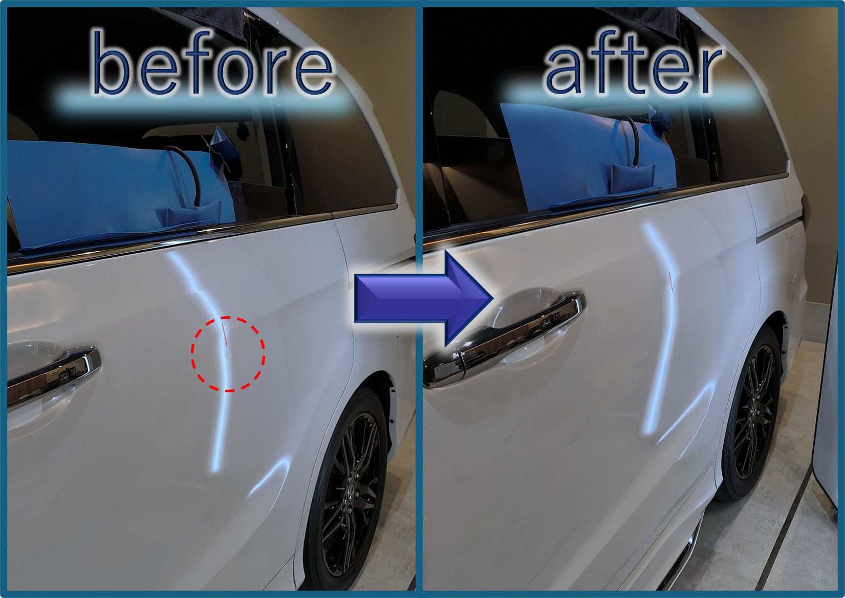 後席スライドドアに浅い凹みがあって気になっているとのご相談です。