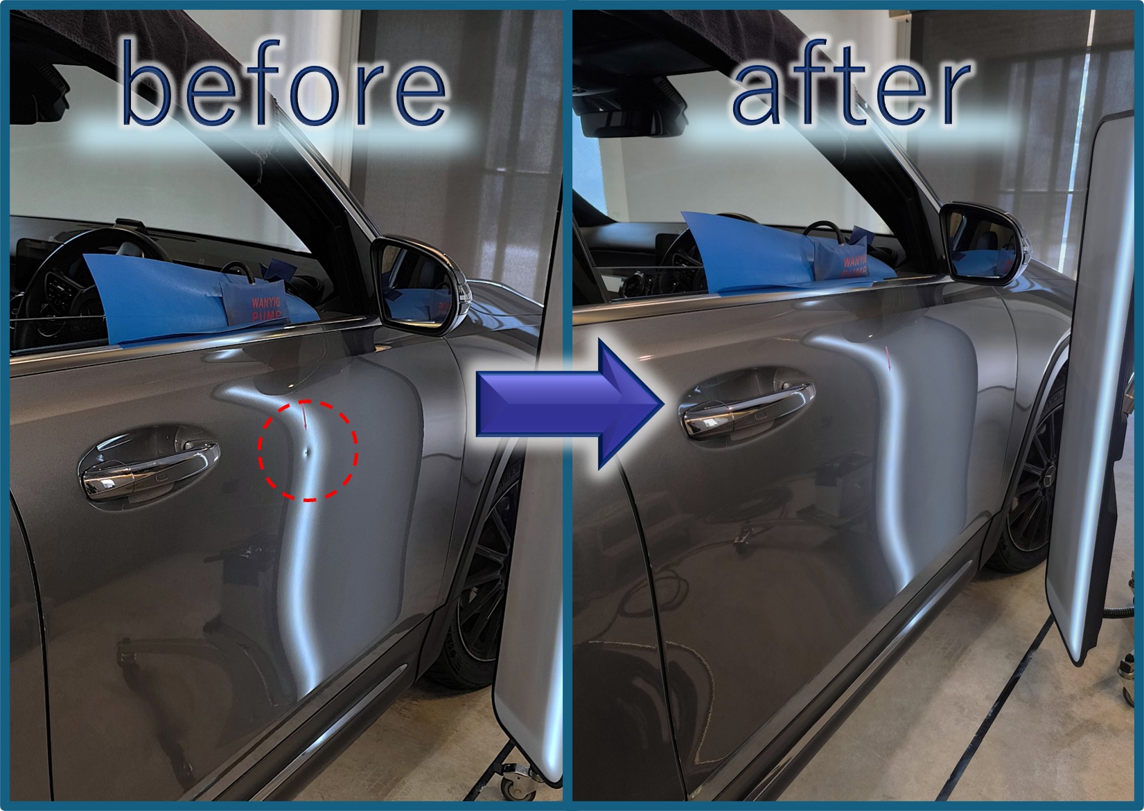 塗装を塗り替えることなく凹みだけを消すことができる修復方法はデントリペアだけです。その施工方法から修理時間も短く済むので、「少しお待ちいただいている間に終わってすぐに乗って帰る」ということが可能です。