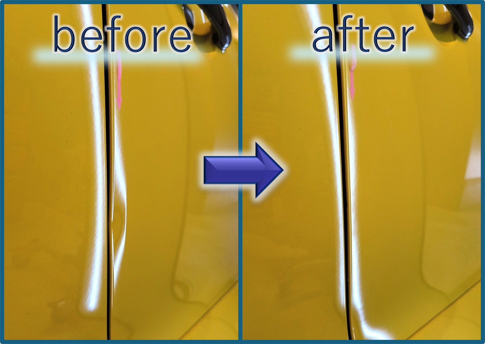 つまり、「完全な修復を」というご意向でしたらデントリペアではなく板金修理かドア交換。「そこまではしたくないけど目立たなくなれば嬉しい」というご意向でしたらデントリペアで対応できます (‘◇’)ゞ